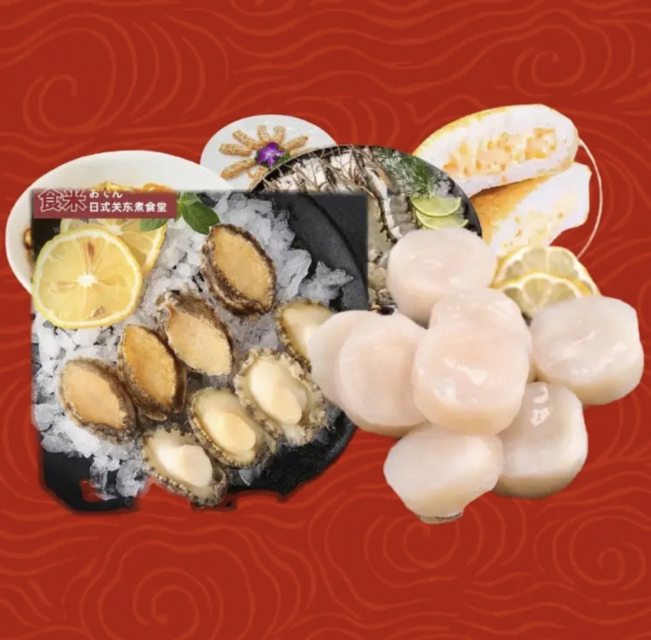 贝柱1+鲍鱼1+南美虾1+乌冬面1+卢虾枣整根+沙拉包1